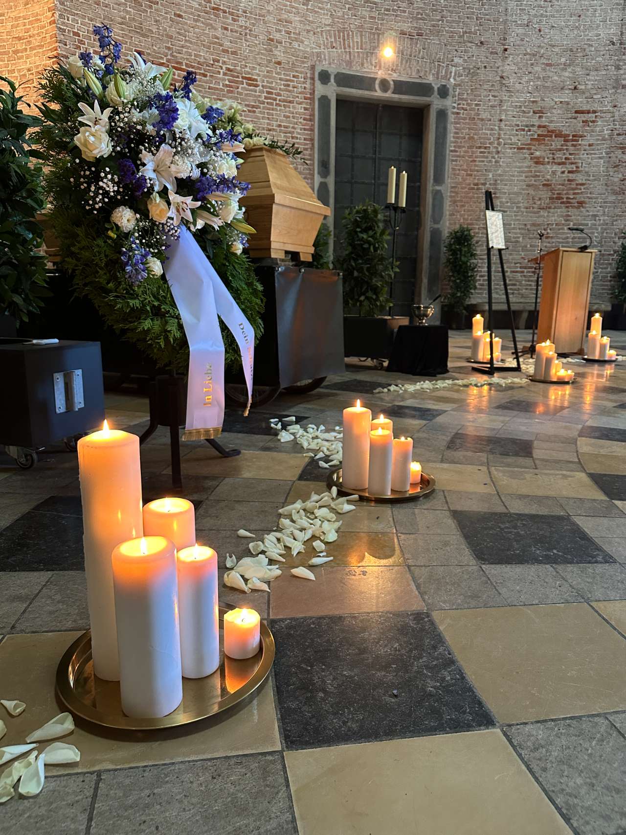 Der Abschied von einem geliebten Menschen ist ein Weg, den jede Familie individuell geht. Die Aussegnungshalle des Friedhofs Taufkirchen bietet dafür einen geschützten, warmen Rahmen. Sie ermöglicht Trauerfeiern in verschiedenen Formen, von klassisch bis modern, von still bis feierlich.